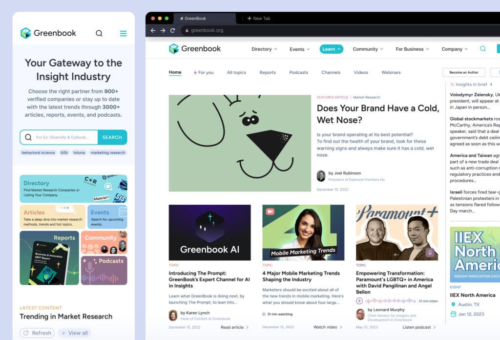 Get ready for a game-changing experience on Greenbook.org! Our upcoming website redesign brings you a sleek interface, lightning-fast search capabilities, and full mobile optimization. Navigate the complex world of market research and insights with unparalleled ease to fuel your business growth. Stay tuned for a smarter, faster, and more personalized Greenbook.