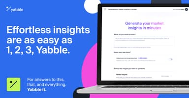 Yabble is an AI-powered insights platform transforming how businesses understand their customers and markets. Founded by researchers with decades of industry experience, Yabble was built with a clear mission: to empower companies with actionable, reliable data — giving every team up-to-date insights whenever they have questions and helping them reach greater efficiencies across the entire research process.